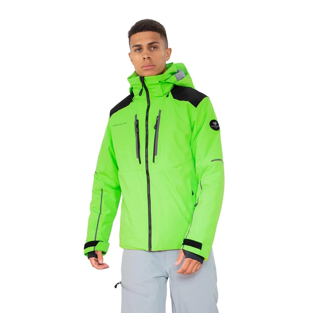 Obermeyer’s Foundation Jacket offers excellent wind protection and waterproofing to keep us warm, dry, and comfortable at the resort. Synthetic insulation traps heat while staying lightweight, and Control Zone Ventilation dumps excess heat when we’ve warmed up.