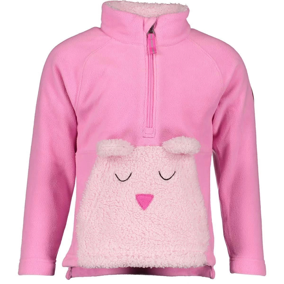 This Toddler Easton Fleece Top has a really cute and useful kangaroo pocket. All girls love animals. They are intrigued with their characters as they learn about all the different species. We designed the Easton fleece top with a kangaroo pocket that is a sleeping bear cub with decorative ears. A deep zipper and fuzzy fleece-lined collar make it easy for her to dress herself. Sure to be her favorite companion.