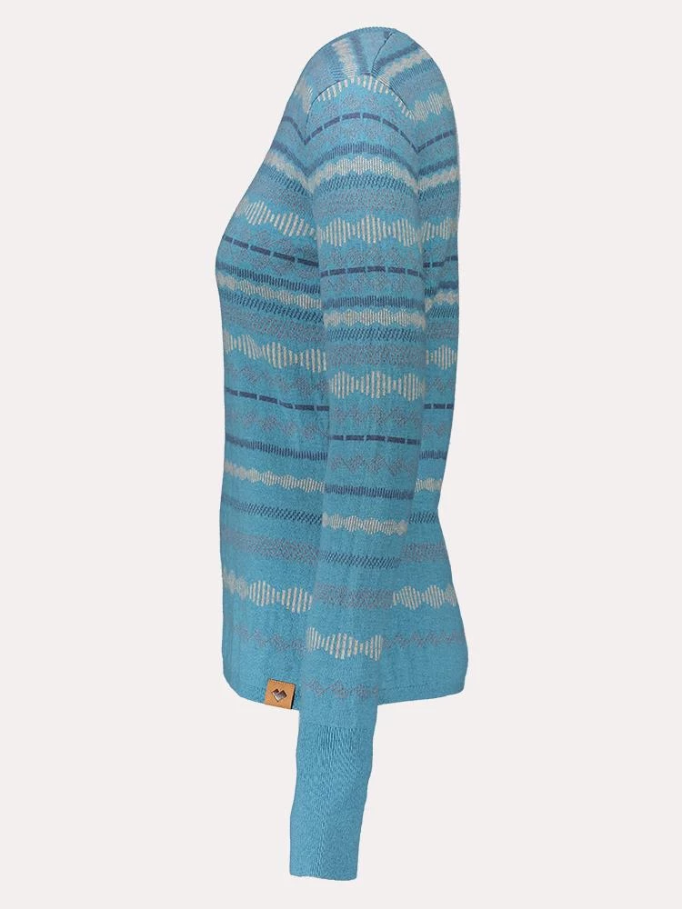 FEATURES:Crew neckThumbhole cuffsJersey knitRib knit hem and cuffs Textured seed stitch50% Nylon, 30% Merino, 15% Acrylic Jacquard Knit